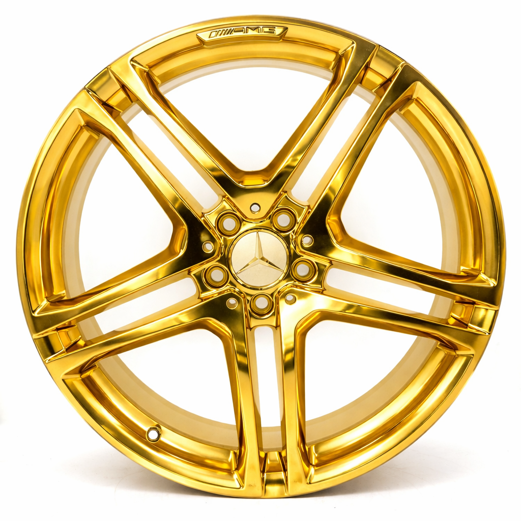 Mit unserer innovativen Vergoldungstechnologie veredeln wir Felgen mit echtem 24 Karat Gold – in hochglänzender Spiegeloptik und ohne galvanische Verfahren.